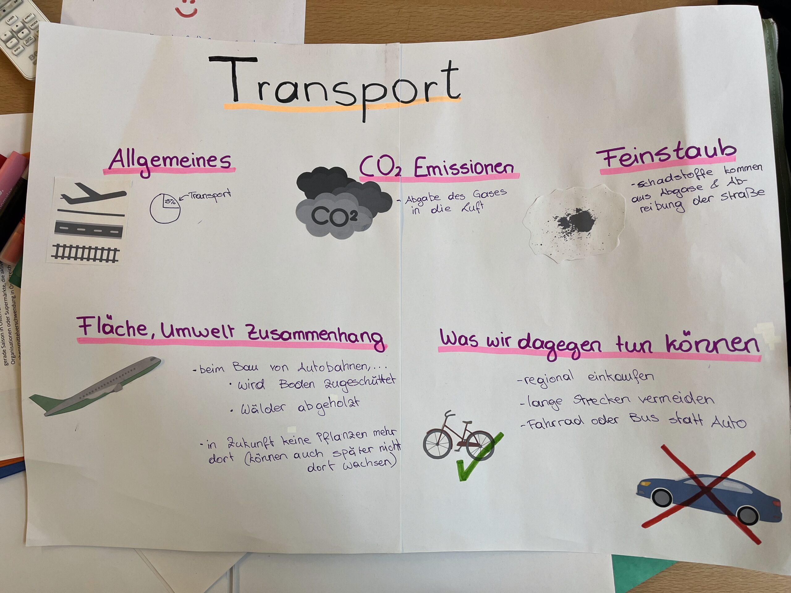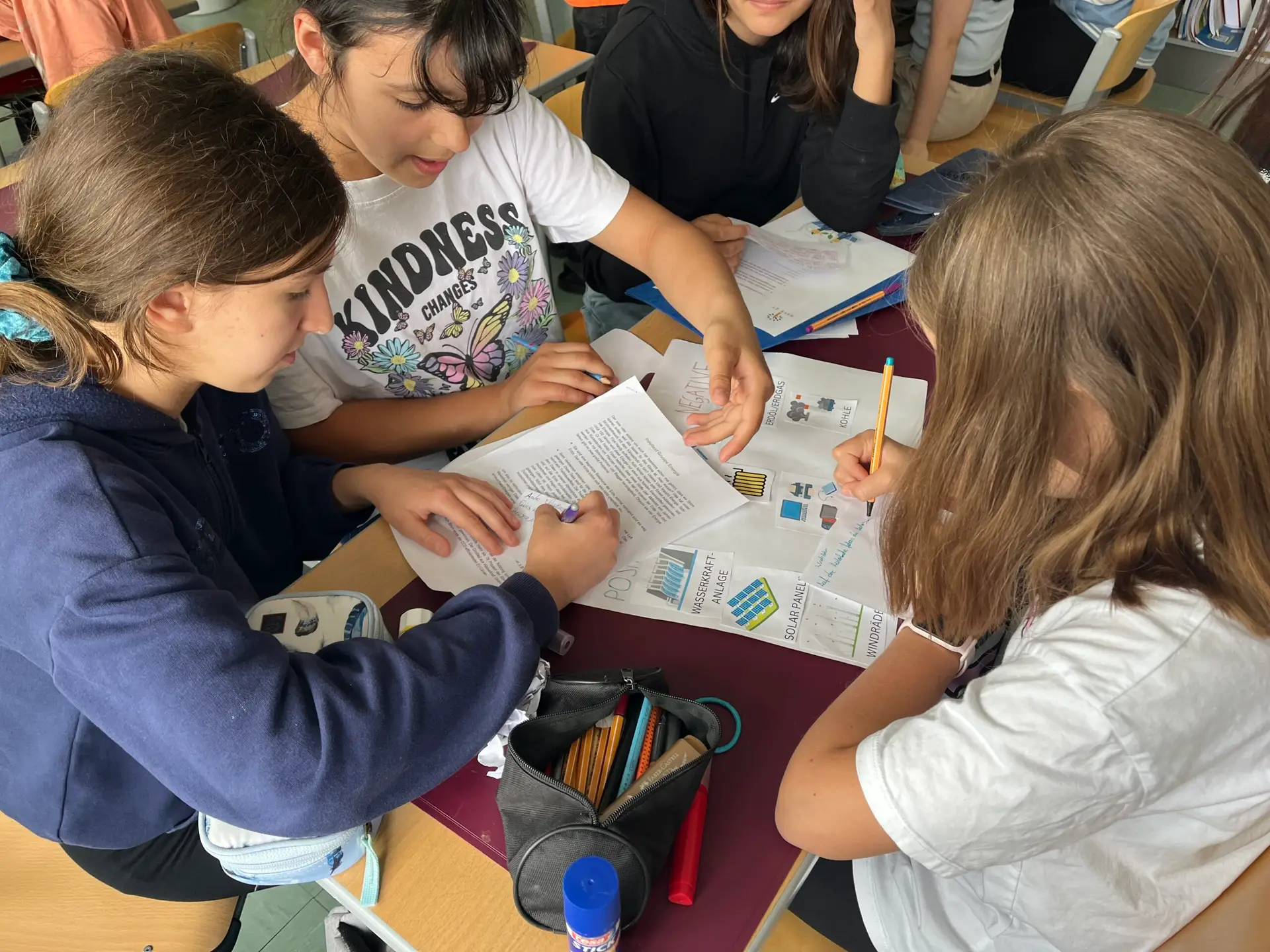 Die Kinder erarbeiten in vier Gruppen die Themen Energie, Mode, Transport und Ernährung