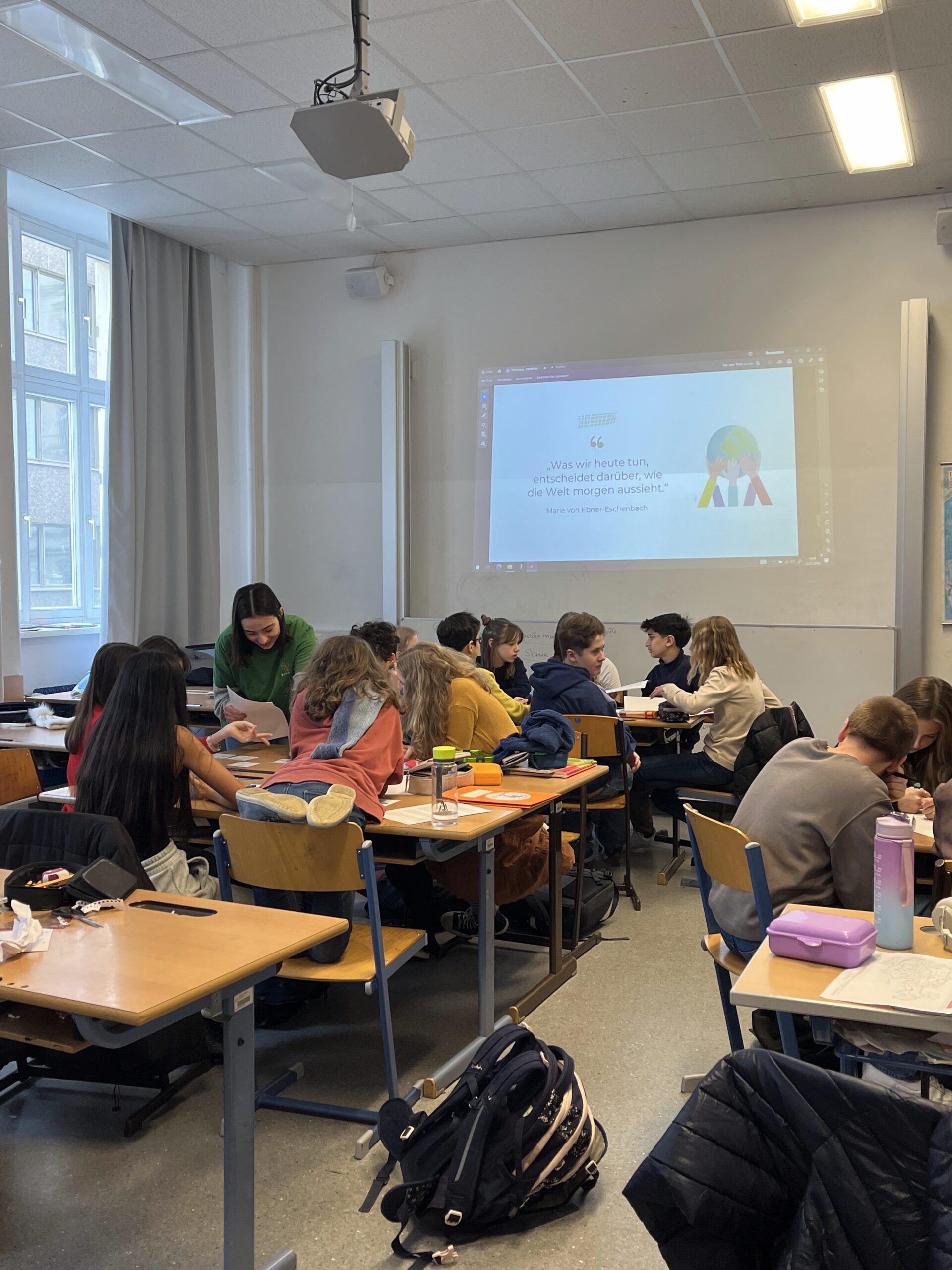 Der Workshop vermittelt altersgerecht Grundwissen über den Klimawandel und globale Zusammenhänge. In Kleingruppen bearbeiten die Schüler:innen Themen wie Energie, Mobilität, Ernährung und Mode und entwickeln eigene Lösungen für mehr Nachhaltigkeit im Alltag.